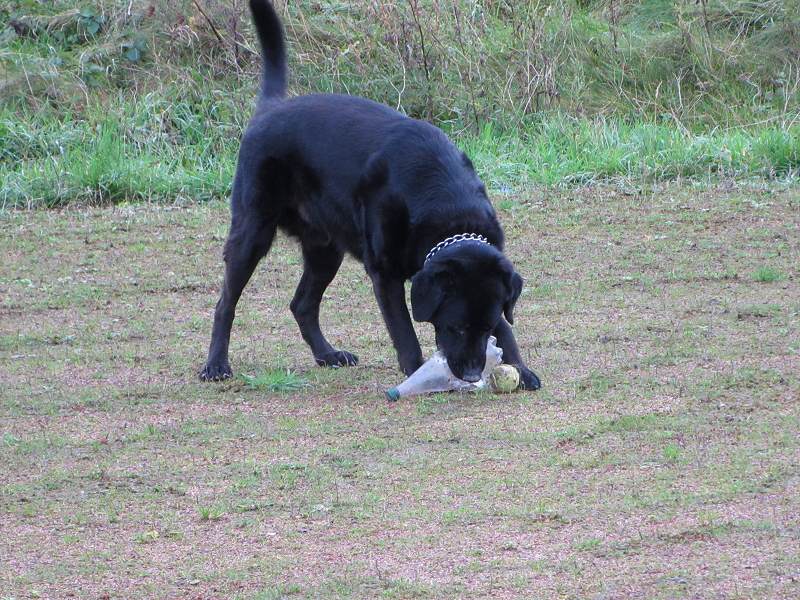 Today we went for a nice long walk and I let him off-lead for a bit so he could play with a tennis ball I brought and some plastic bottles that were lying around. After that we went to the waterfront behind the supermarket Morrisons and met some nice dogs and people before coming home.