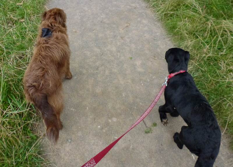 Beau is now eighteen weeks old and is getting quite long in the legs as she grows! Beau is such a friendly pup and any walk she goes on she will always spend some time running back to me for cuddles and be petted! Today she joined Nevis who is about three months older but quite a lot bigger, stronger and a pup that is experienced in the play fighting that Rory and Skye love to get into! Nevis doesn’t get walked a set number of times a week, he’s a ‘walk when needed’ but knows the other dogs well and is very friendly with any new dog he meets!