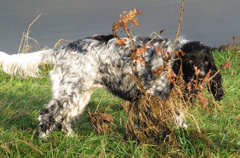 Jersey being a couple of years older likes to just let the pups play and when she fancies it she joins in with chasing after sticks or getting the pups to chase after her. Penny is a dog that I’ve been walking since she’s been a tiny pup. She used to get puppy visits but is now being walked with the adult dogs. She has grown up so fast. You can see some pics of Penny as a tiny pup here (July 2011).