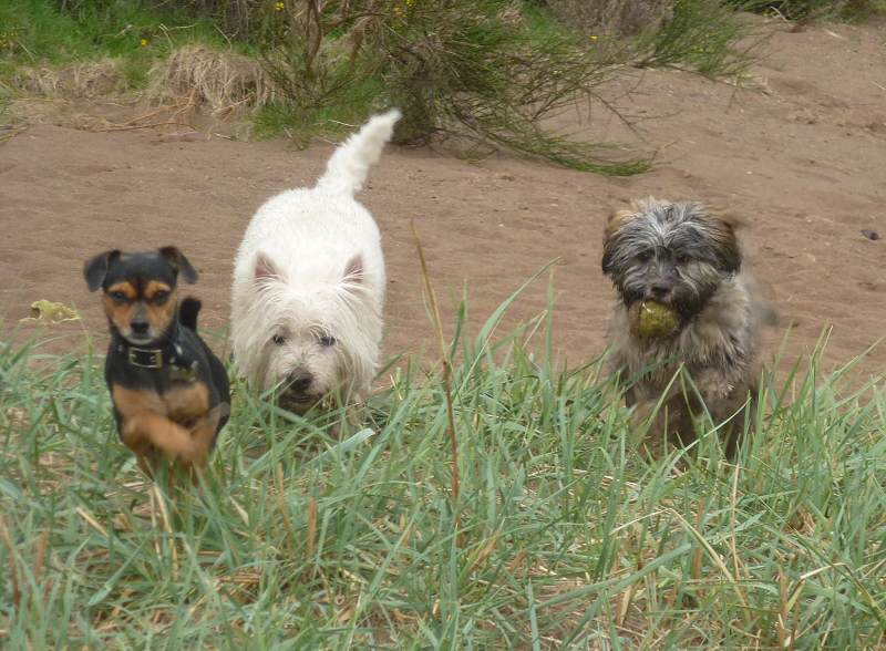 It was mild this morning and lunchtime but in the early afternoon the rain brought in some cold winds and it wasn't that pleasant being out. This afternoon I took Ruffles, Wilfred and Chilli and collected Mack from the Mar hall golf and spa resort, Bishopton, where his owner works and took them all to the beach for a runabout.